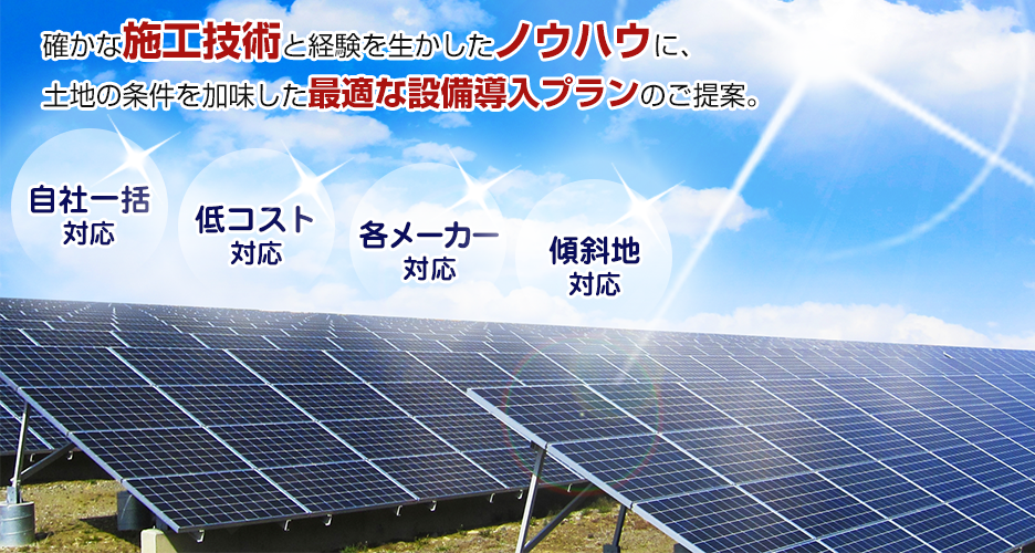 大同エコシステムは、産業用、家庭用、投資事業としての太陽光発電の設置、施工からアフターメンテナンスまでトータルサポートしている会社です。確かな施工技術と経験を生かしたノウハウに、他の条件を加味した最適な設備導入プランの提案を得意としています。